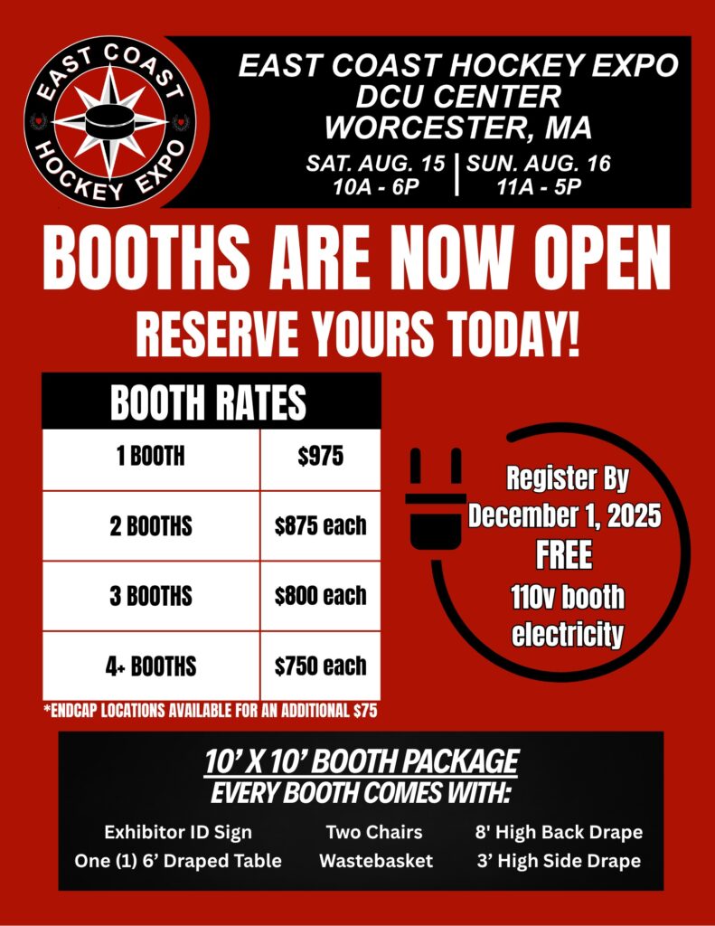 Put your products and services in the spotlight in front of thousands of players, families, coaches, and die-hard fans at New England’s biggest hockey event! This is your chance to connect directly with a passionate audience eager to discover the latest gear, innovations, and services.