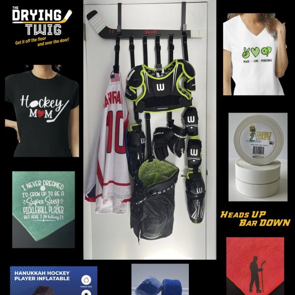 ‘Innovative, meaningful and creative ideas and products to help you learn, grow and just have fun. From our first product – Heads Up Bar Down – which helps train players to avoid dangerous collisions and develops their skill by training themselves not to have to look at the puck, to The Drying Twig® over the door equipment dryer, to our Trebby Tape hockey stick, grip and shin guard tape, tape bags, skate towels, fun hockey merch to our newest products 6ft tall holiday inflatables, Trebby Sports was developed as a way to introduce meaningful hockey ideas to parents outside the big box stores. From our family to yours!’